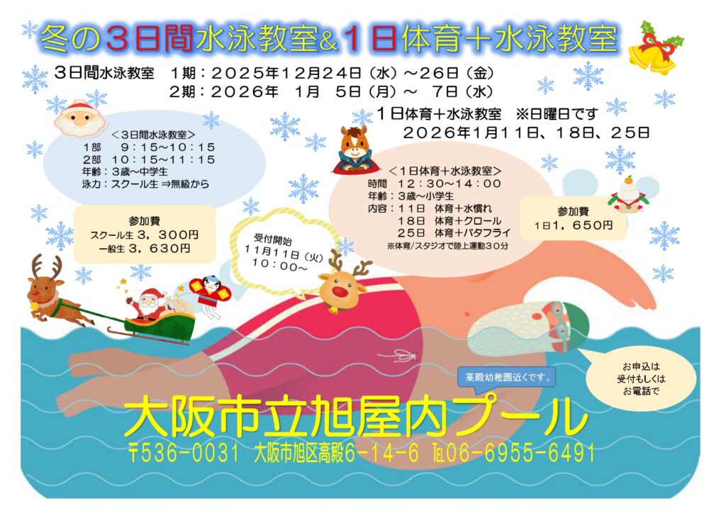 【1日体育30分+水泳教室60分】・1月18日 体育+クロール・1月25日 体育+バタフライ(時間)12:30~14:00