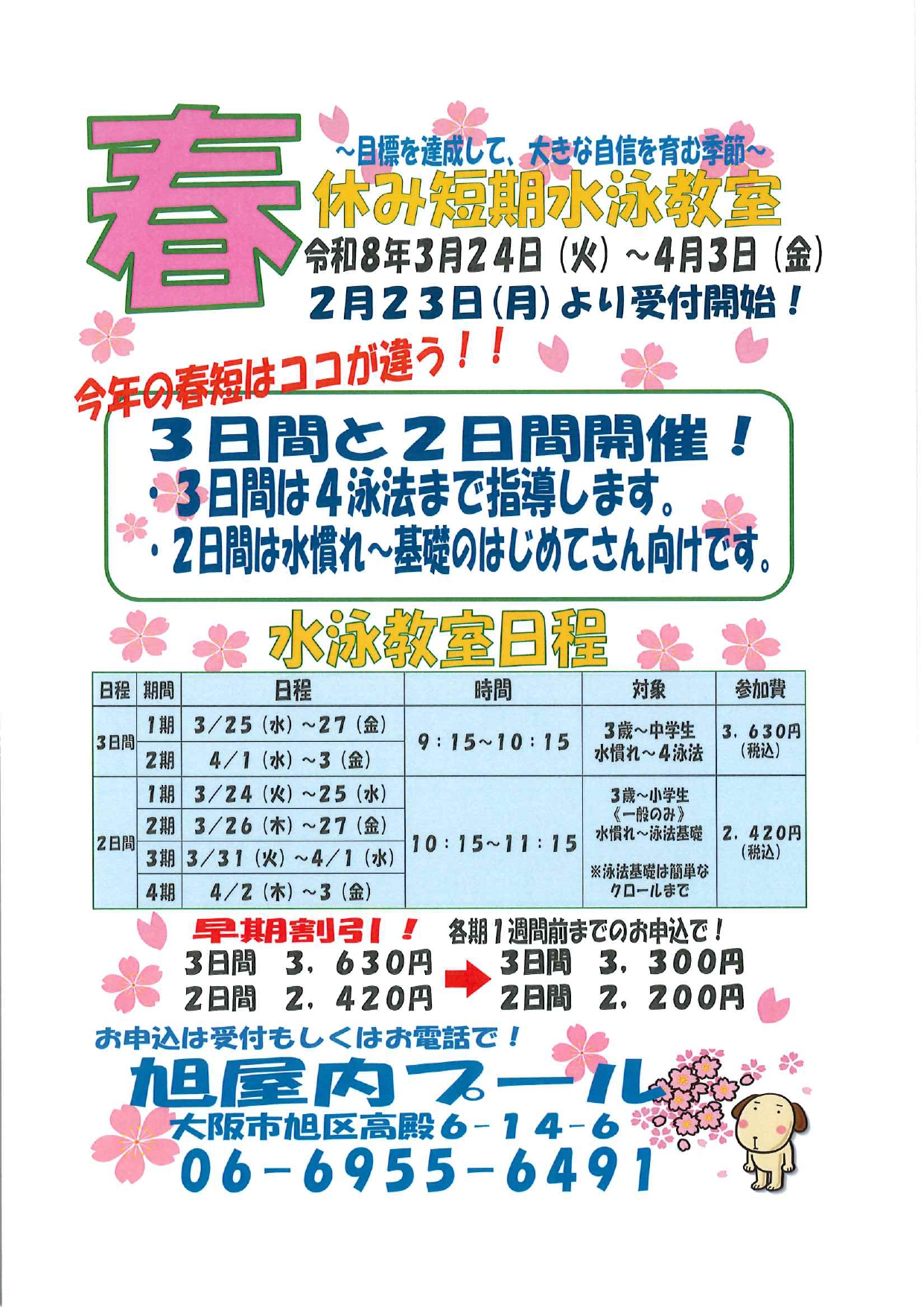 いつも旭屋内プールをご愛顧いただき誠にありがとうございます。