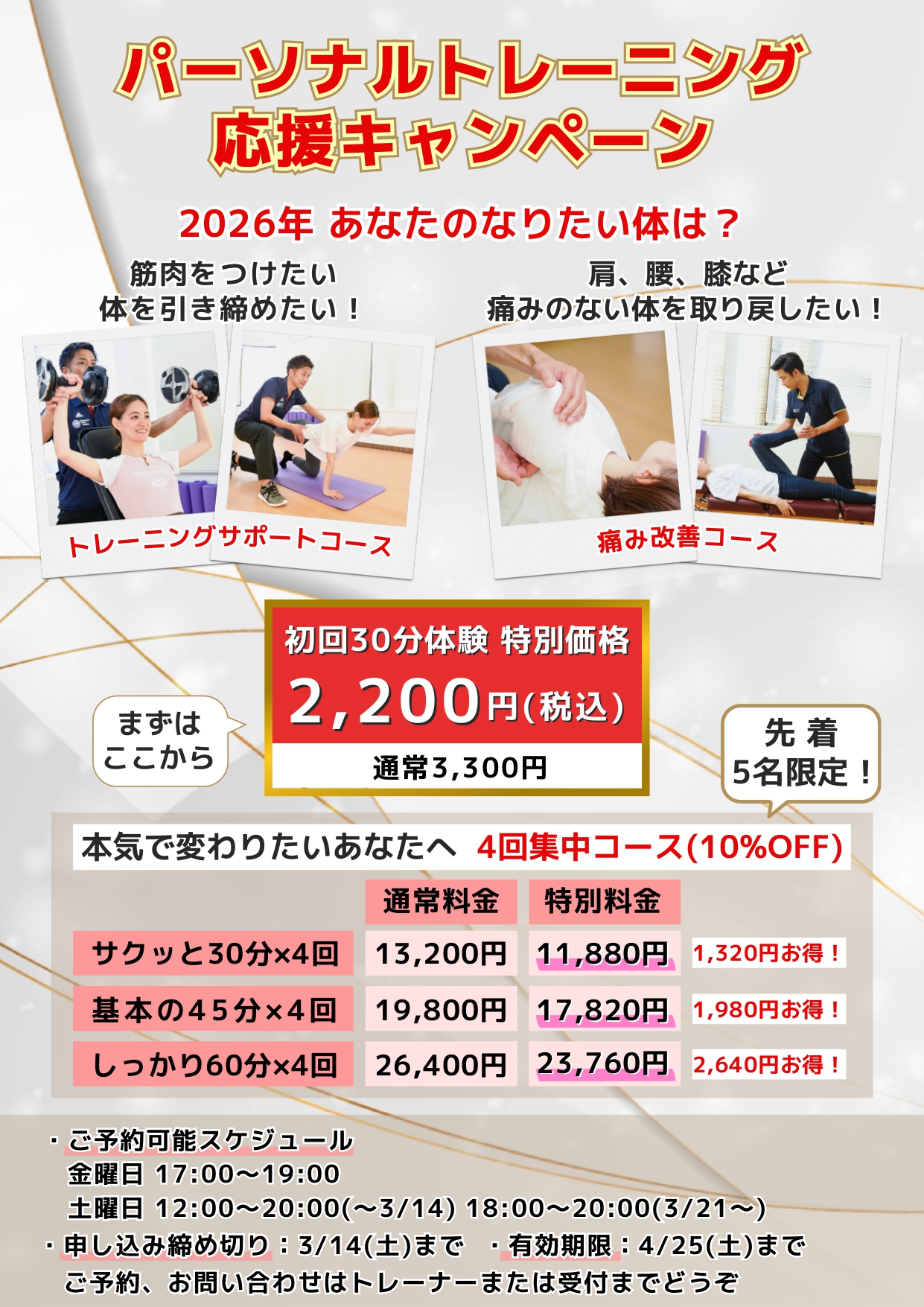パーソナルレッスンを受けて体を変えてみませんか!